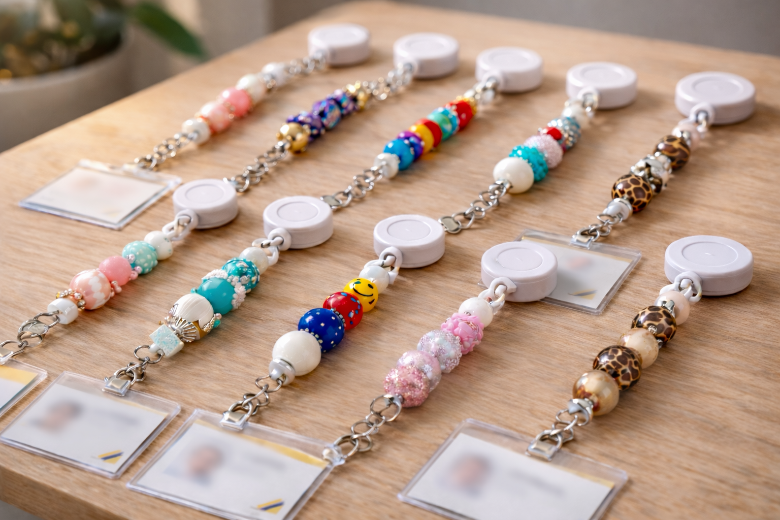 Découvrez notre collection de porte-badges rétractables, conçus pour apporter une touche de fantaisie et de personnalité à votre quotidien professionnel. Chez Ozea, nous transformons l'utile en accessoire de mode, fait main.